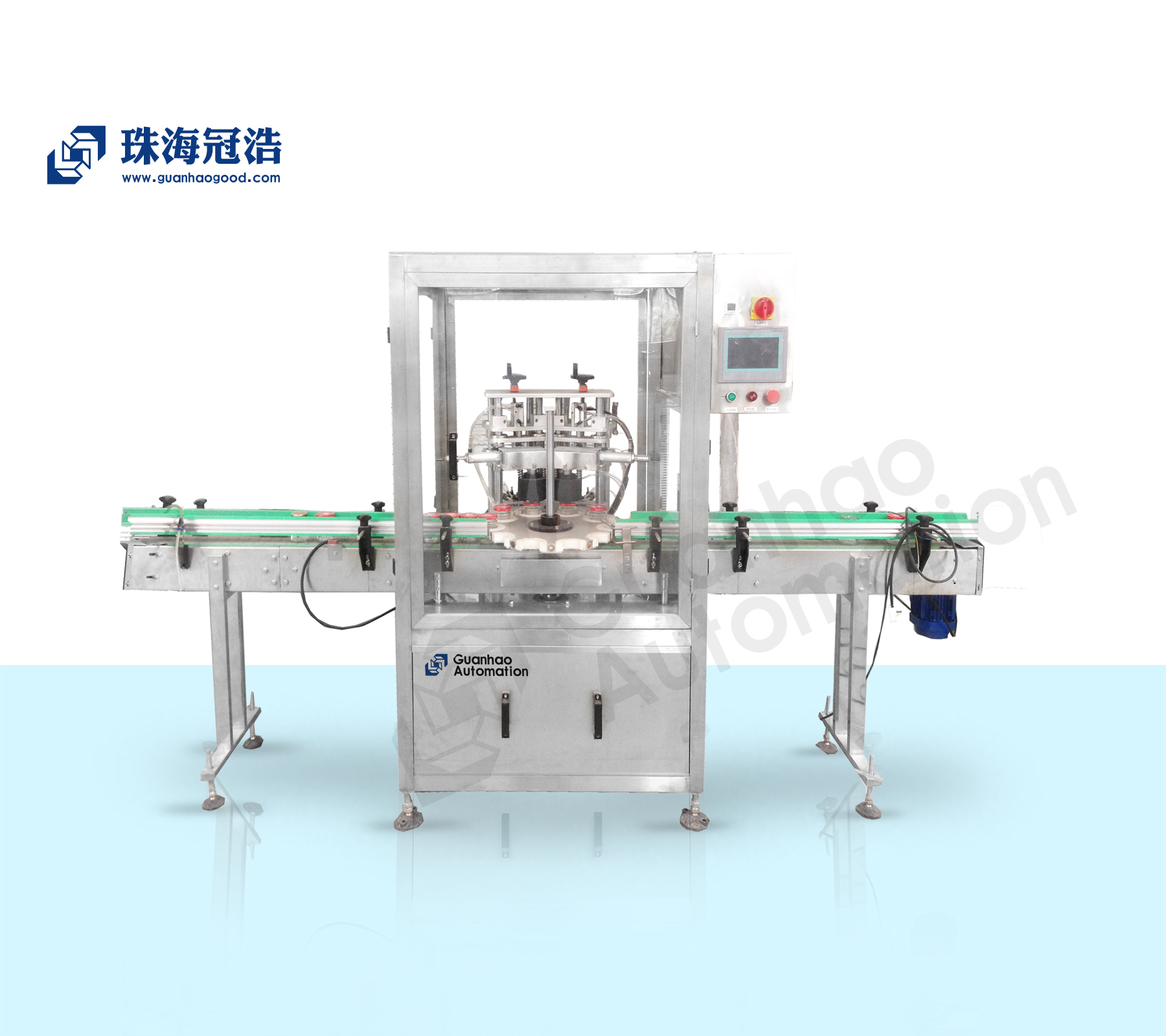珠海冠浩機(jī)械全自動(dòng)雙頭抽真空旋蓋機(jī),是我司引進(jìn)國(guó)外原理和技術(shù),結(jié)合自身多年的生產(chǎn)經(jīng)驗(yàn)研制而成,該機(jī)集自動(dòng)理蓋、自動(dòng)上蓋、自動(dòng)抽真空旋蓋于一體,生產(chǎn)速度快,效率高,運(yùn)行穩(wěn)定可靠。該機(jī)適用性強(qiáng)可選用圓形、方形、各種異形瓶等,更換不同規(guī)格的瓶子、蓋子只需簡(jiǎn)單調(diào)整,操作方便,是一款理想的三四旋蓋玻璃瓶自動(dòng)旋蓋設(shè)備。