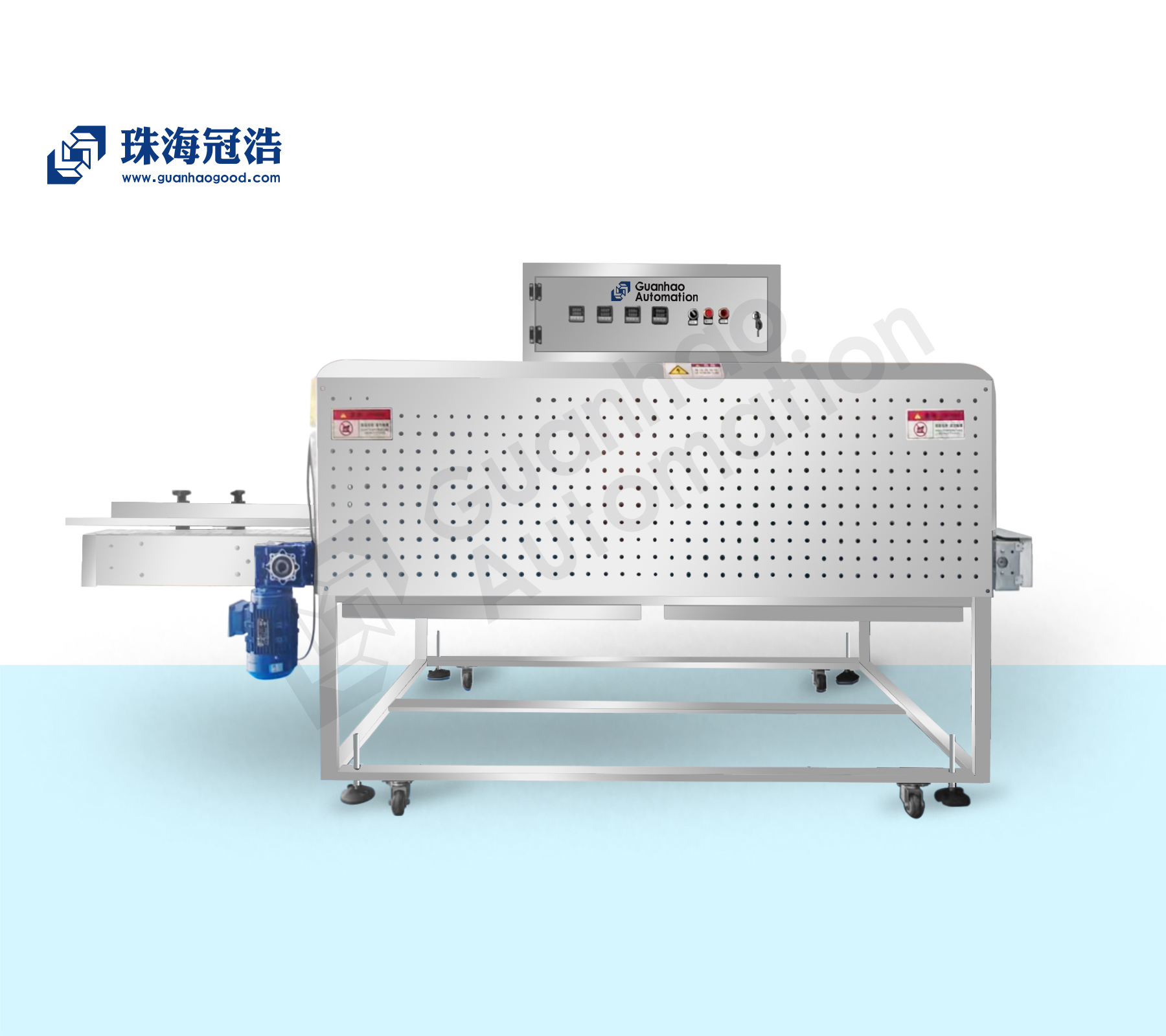 1. 本機機架均采用304#優(yōu)質(zhì)不銹鋼制造,動力傳動采用雙電機輸出,結(jié)合不銹鋼鏈板輸送帶與工程塑料零件組成,耐高溫耐腐蝕且美觀干凈易于清潔,符合食品級衛(wèi)生要求;
